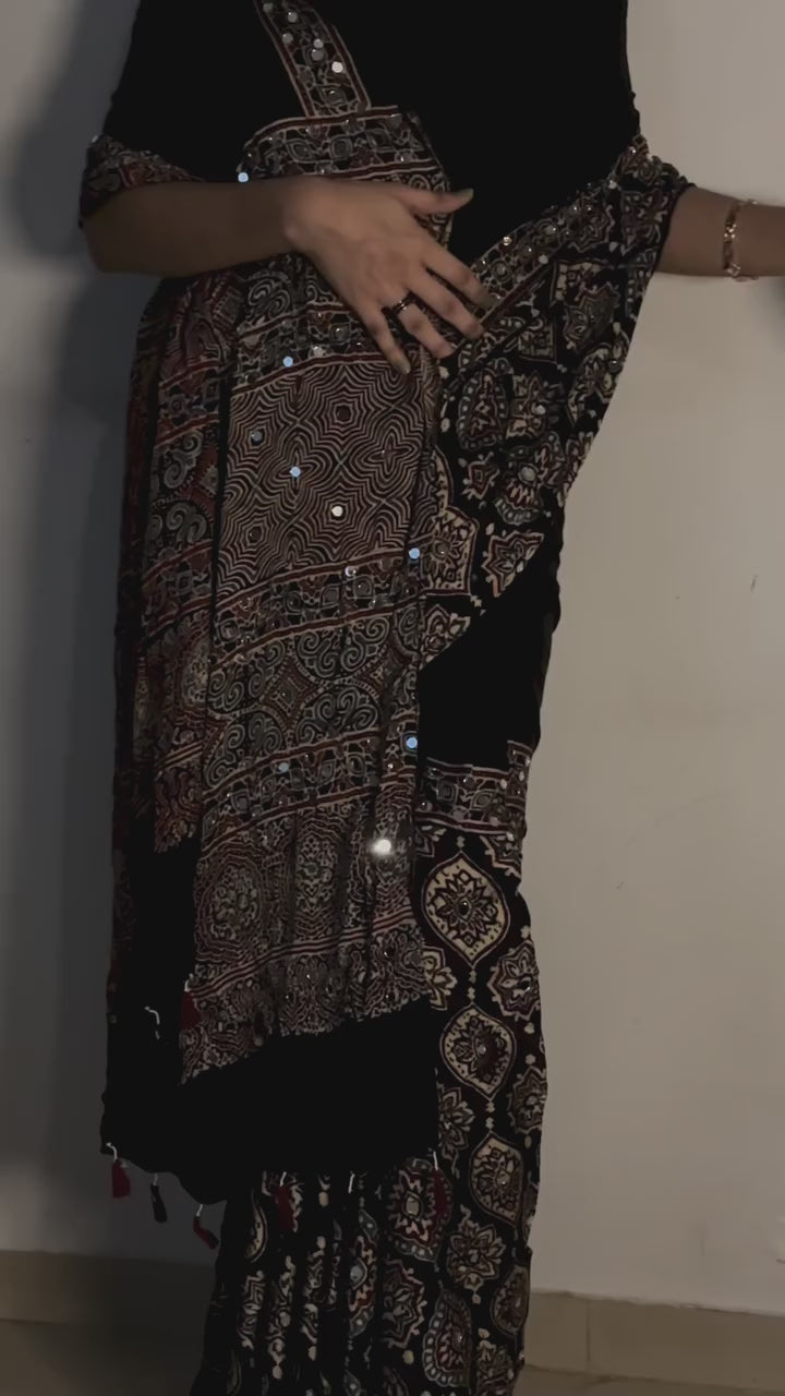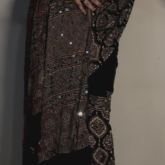 Nazar Black Sheesha Ajrakh Saree